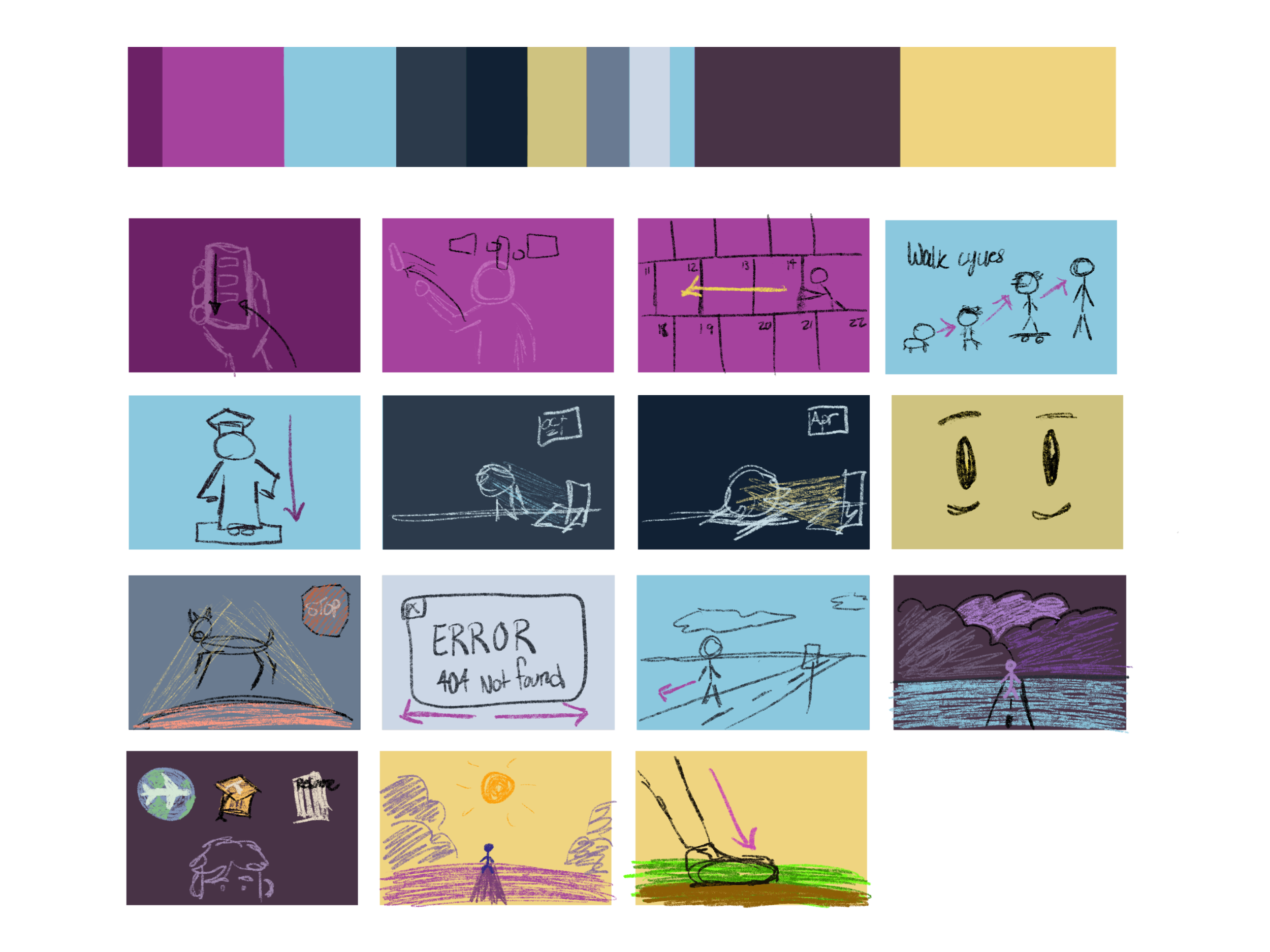 In a later college course, I expanded my original animatic into a full animation, using color to convey emotion—cooler tones reflecting my worries and warmer tones symbolizing my search for optimism. The project became a therapeutic outlet, helping me process a complex and uncertain time in my life.